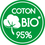 *le tissu au contact de la peau contient 95% de coton issu de l’agriculture biologique.